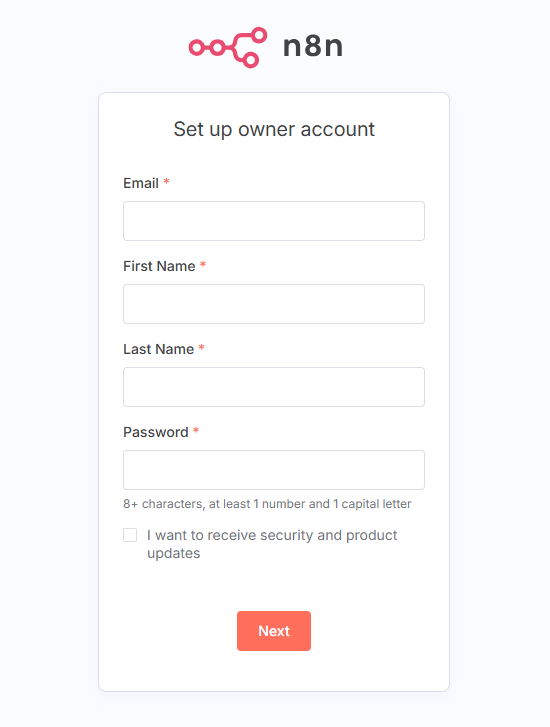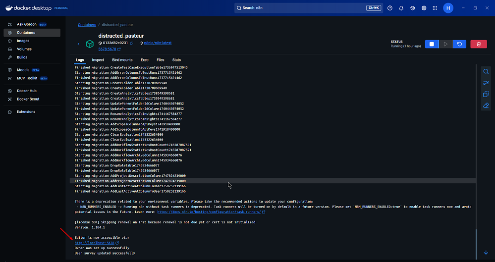 Once your n8n container is up and running, it’s time to access the local instance and complete the initial setup. This step allows you to create your admin account, configure security settings, and activate your local n8n environment.