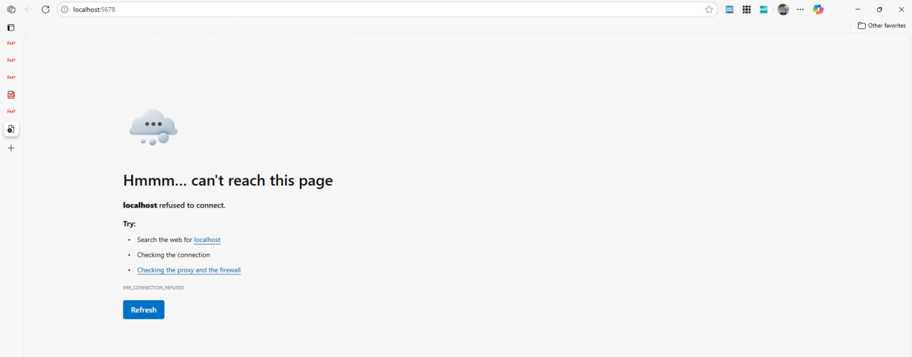 Solution: check the option settings step when you run the container. The missing port information can cause this issue